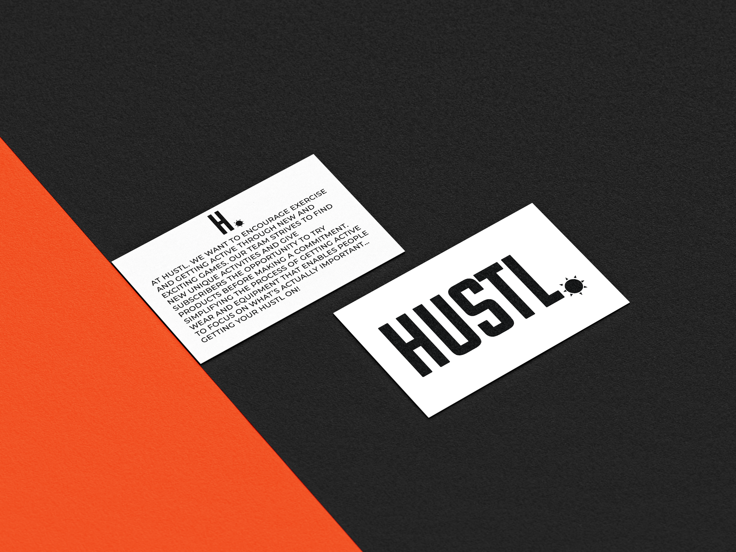 HUSTL. is a brand created to advertise sports subscription packages. The brand has a simple but dynamic identity design using angles and silhouettes to simplify sports equipment and scenes. Variations of packaging and the HUSTL. logo were created for each of the separate packages you could receive. The colors chosen to represent this brand were orange black and white, which create the atmosphere or intense energy that is synonymous with sports.